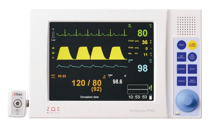 • Reliable monitoring: ECG, Respiration, CO2, SpO2, NIBP, and temperature.