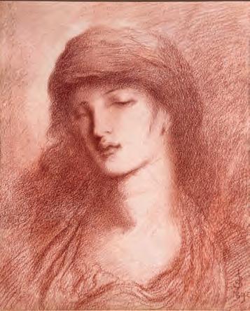 Study of a young woman, by Simeon Solomon (1840–1905). 1890. Red chalk on paper, 35.5 by 29 cm.