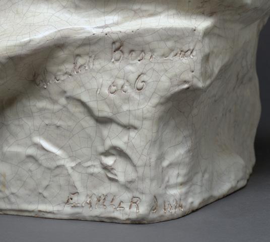 Germaine is a striking representation of Besnard’s daughter, sensitively rendered in all her liveliness. The medium of glazed terracotta gives the sculpture a uniquely whimsical appearance. It was exhibited at the ‘Salon de l’Art Nouveau’ organised in 1895 at the Maison Bing in Paris – a seminal show that foreshadowed the direction European art was to take at the beginning of the twentieth century.