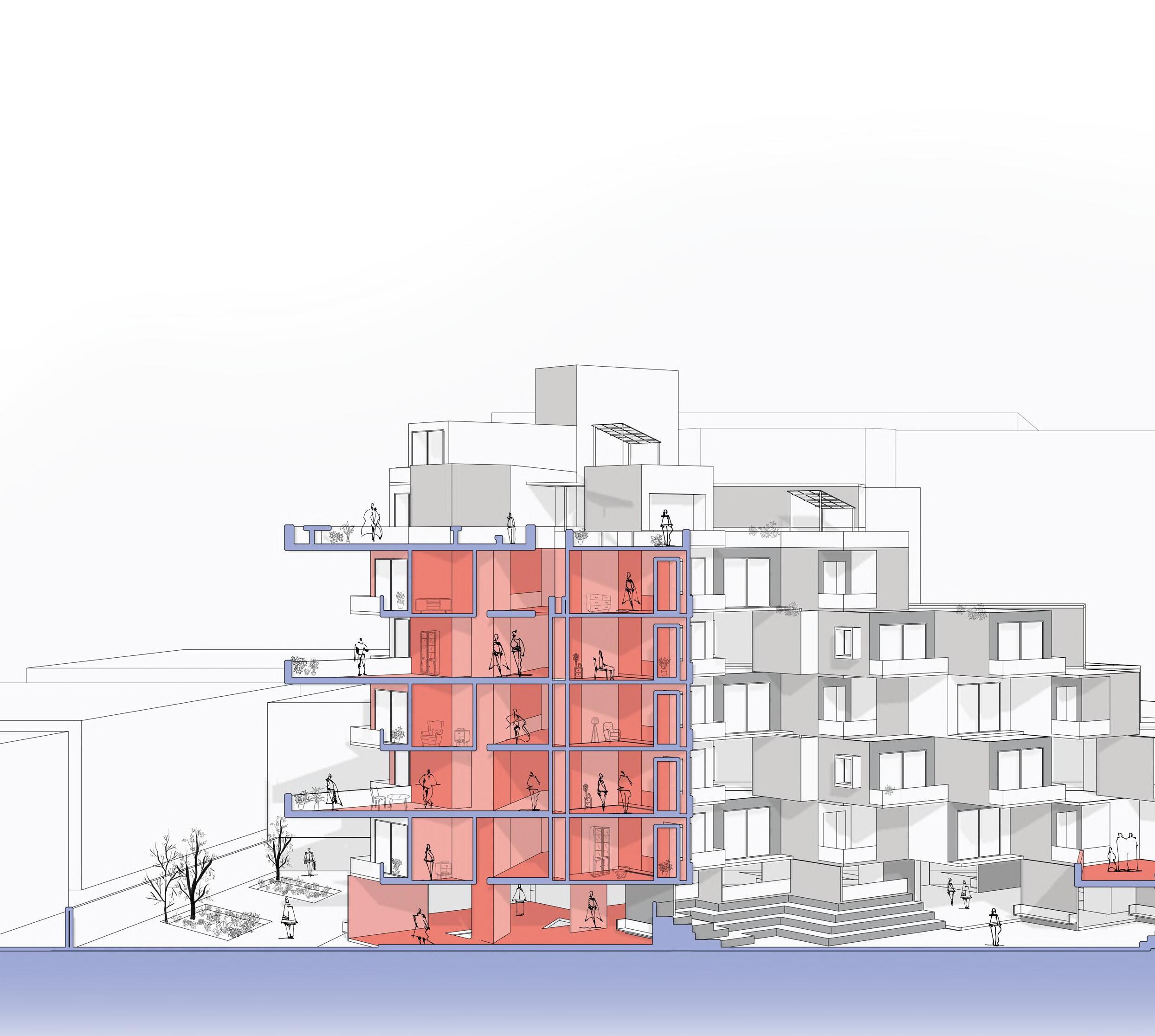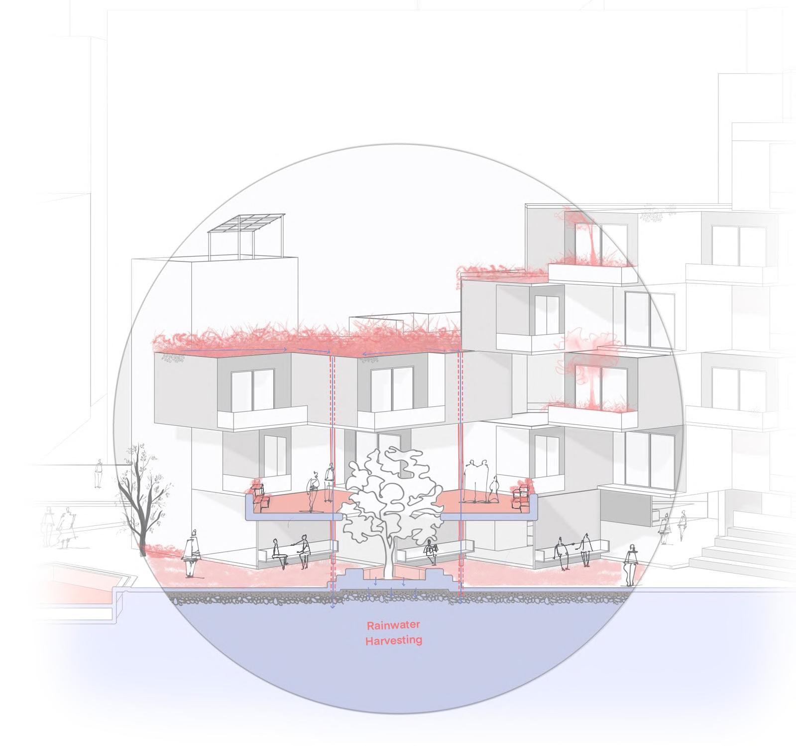 Shajar-e-sukoon, translates to ‘Tree of Tranquillity’. It is a staff housing designed with a stepped form generating terraces and breakout spaces on multiple levels with plantations and urban farming, with the intention to provide a sustainable, adequate and affordable living.