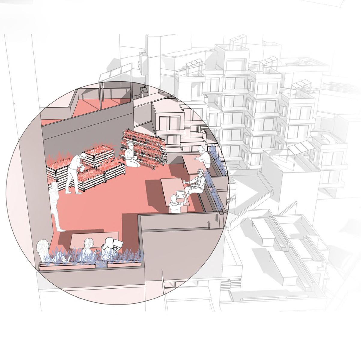 Terraces with Urban farming Bridge connecting the two blocks