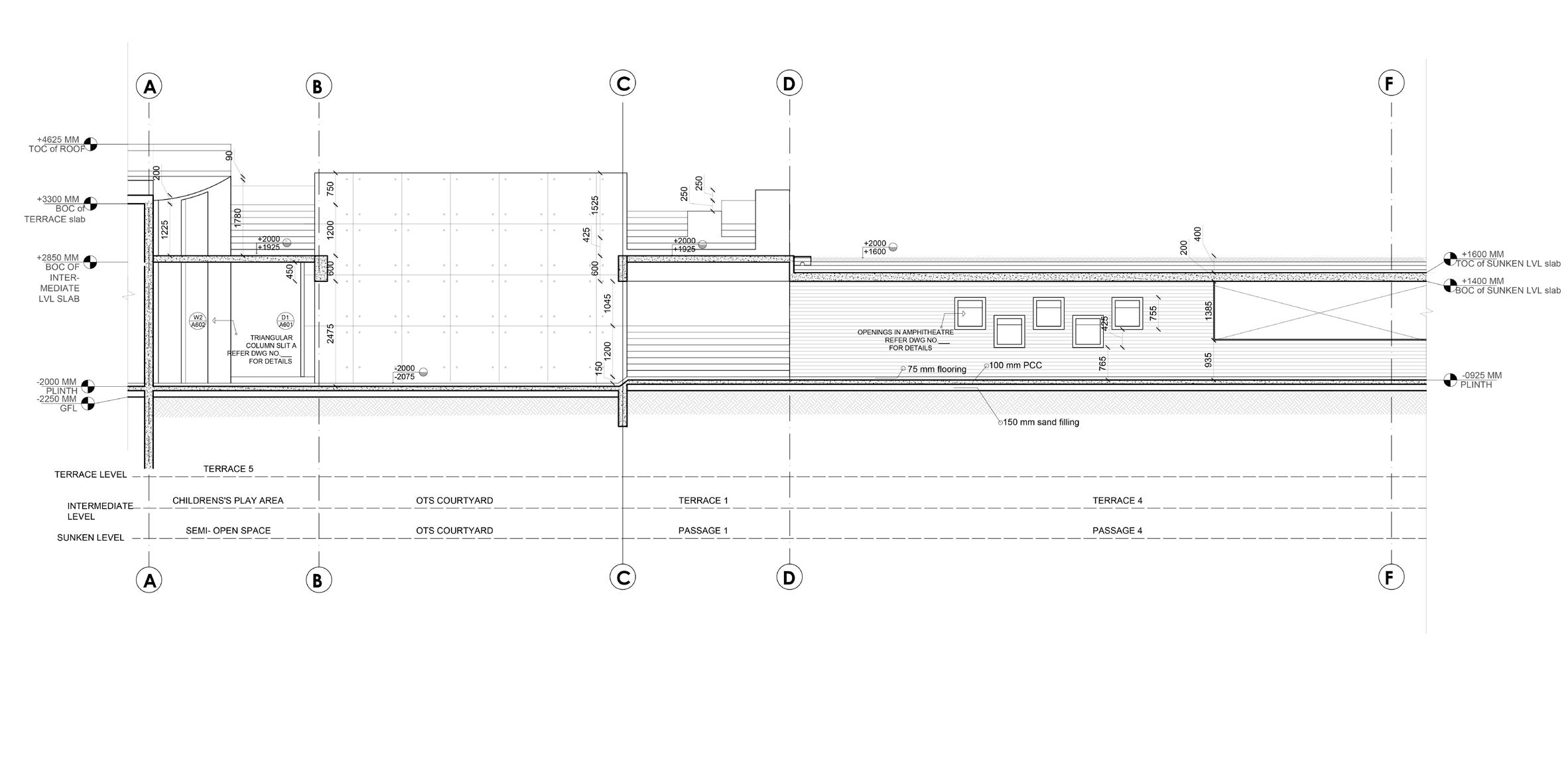 Non-building: Terrain sloping upto terrace of a sunken built mass