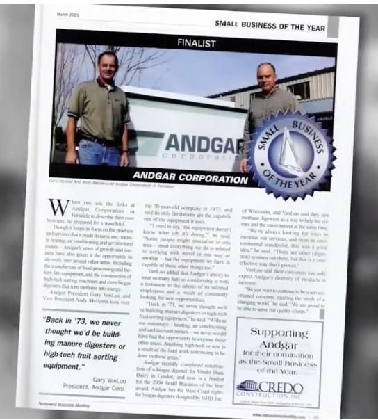 A special In Memoriam award will celebrate Gary VanLoo, one of the founders of Andgar Corporation, who dedicated his life to his business, employees, family and community, inspiring the many lives he touched.