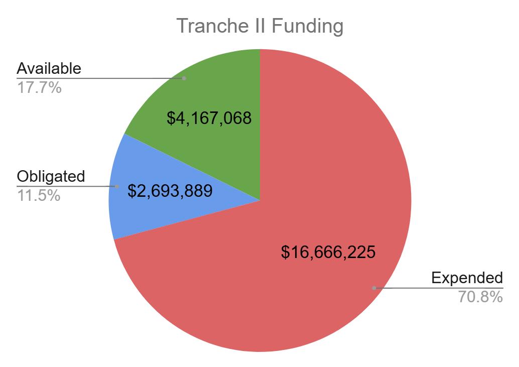 AsofDecember31,2025, approximately$16.6million(70.8%) ofTranche2hadbeenexpended, and$2.7million(11.5%)hadbeen committed,leaving$4.5million (17.7%)availablefordisbursement. Intotal,$19.4millionhadbeen committedorexpendedoutofthe $23.5millionofTranche2.