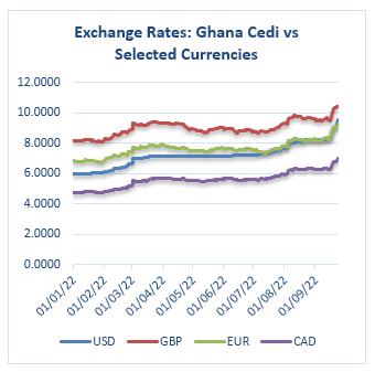 The Cedi likewise weakened against the Canadian Dollar for the week. It opened at GH¢6.7825/C$ but closed at GH¢7.0265/C$, reflecting w/w gain and YTD depreciation of 3.47% and 32.52% respectively. This compares with YTD depreciation of 1.98% a year ago.