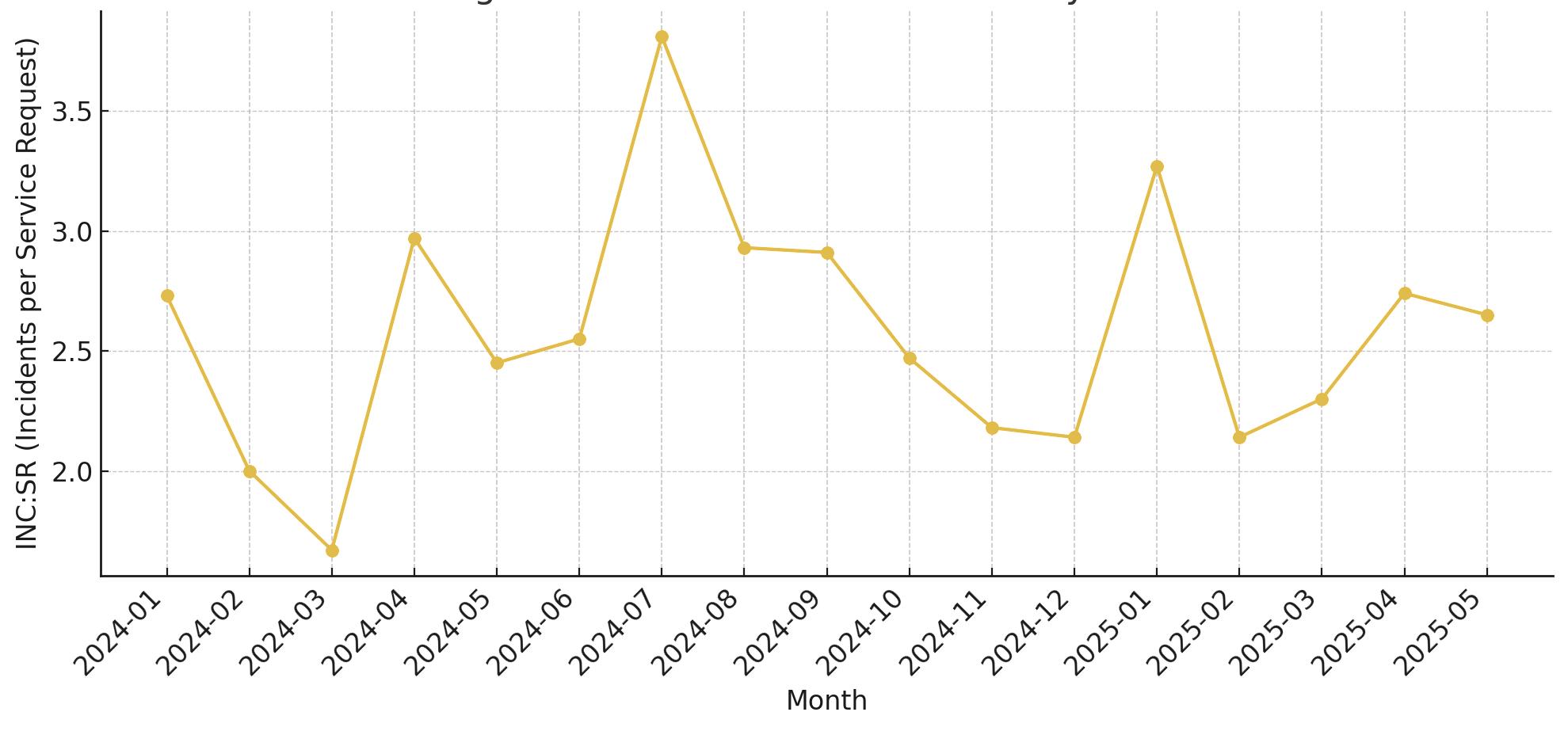 1) Instrument what matters. Trend INC:SR by month and region; overlay volume on the business calendar; measure reopen/ duplicate rates, time‑in‑status, and backlog composition.