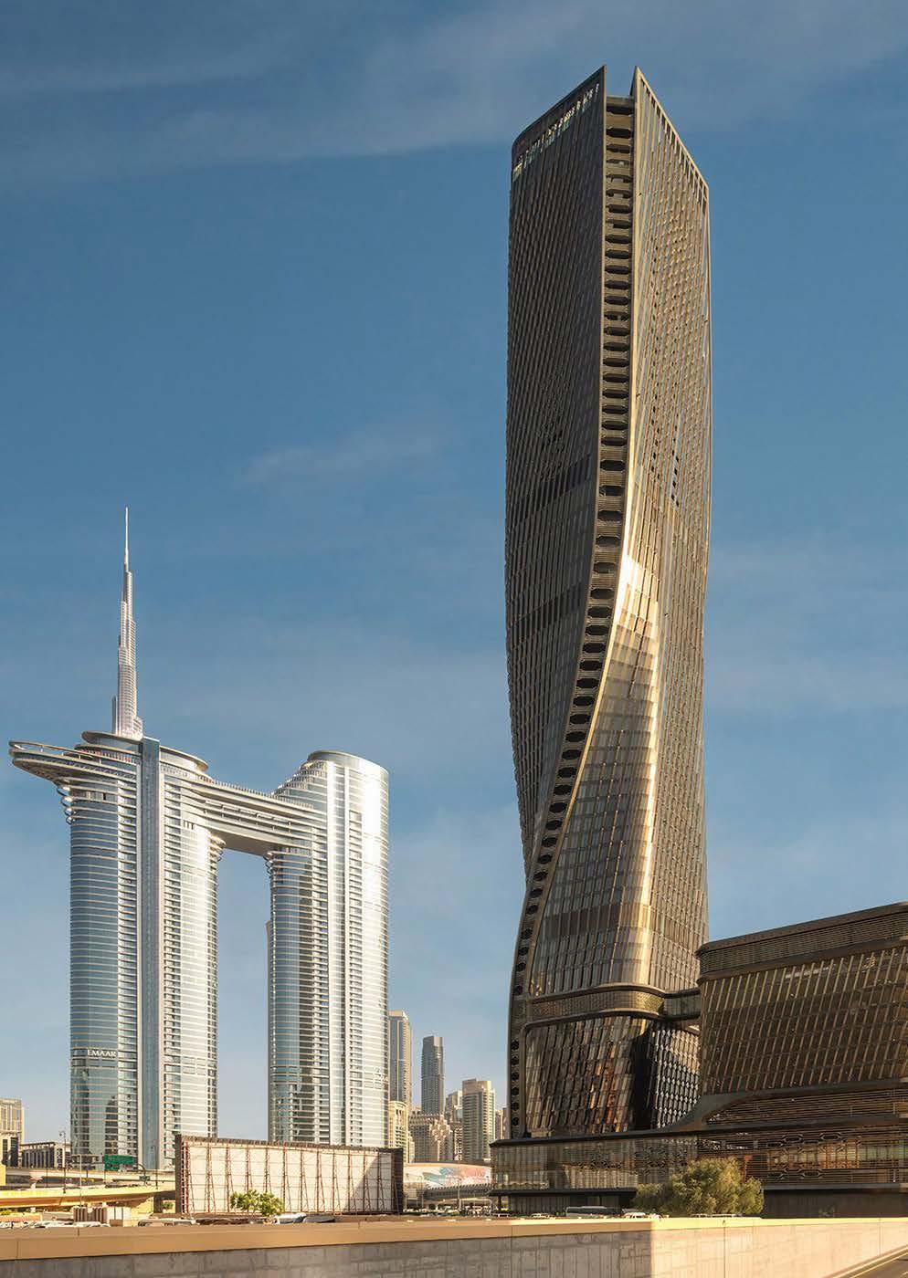 Nestled in the twisting form of Wasl Tower on Sheikh Zayed Road, Mandarin Oriental Downtown Dubai opens this October as a symbol of contemporary elegance. The hotel offers 259 rooms and suites with panoramic views of the Arabian Gulf and city skyline, complemented by 224 branded residences. Every detail reflects thoughtful design and refined comfort. Ten world-class dining venues deliver global and local flavors, while the spa spans two floors of wellness innovation, blending ancient healing practices with modern technologies. Advanced energyefficient features, including natural cooling fins integrated into the tower’s ceramic façade, ensure that luxury and sustainability go hand in hand.