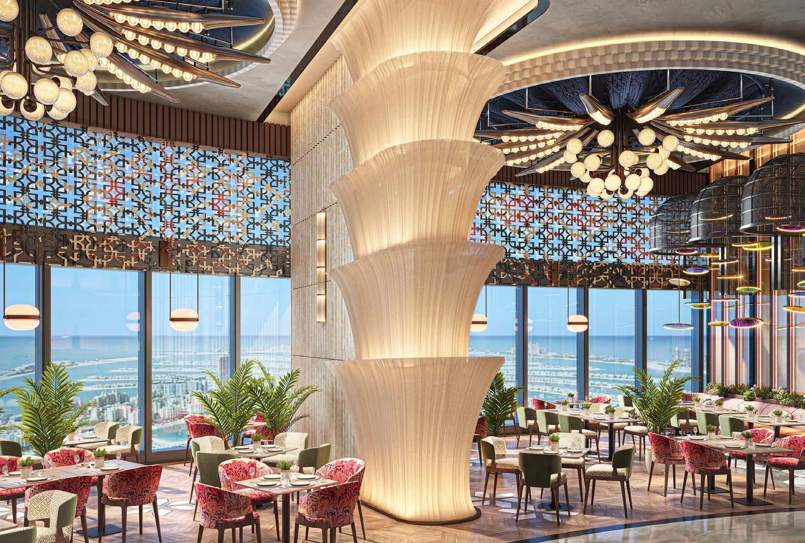Ciel Dubai Marina, part of the Vignette Collection, is poised to become the world’s tallest hotel when it opens in November 2025. The 365-meter tower offers 1,004 rooms with floor-to-ceiling windows that showcase sweeping views of the marina and city skyline. A rooftop infinity pool on the 76th floor provides the ultimate vantage point for sunsets over the water. Inspired by natural elements such as water, fire, and earth, the interiors combine opulent textures and innovative design. Guests will find a mix of restaurants, bars, and social spaces curated to offer a full spectrum of experiences, from intimate fine dining to lively lounge settings, all elevated by breathtaking panoramic backdrops.