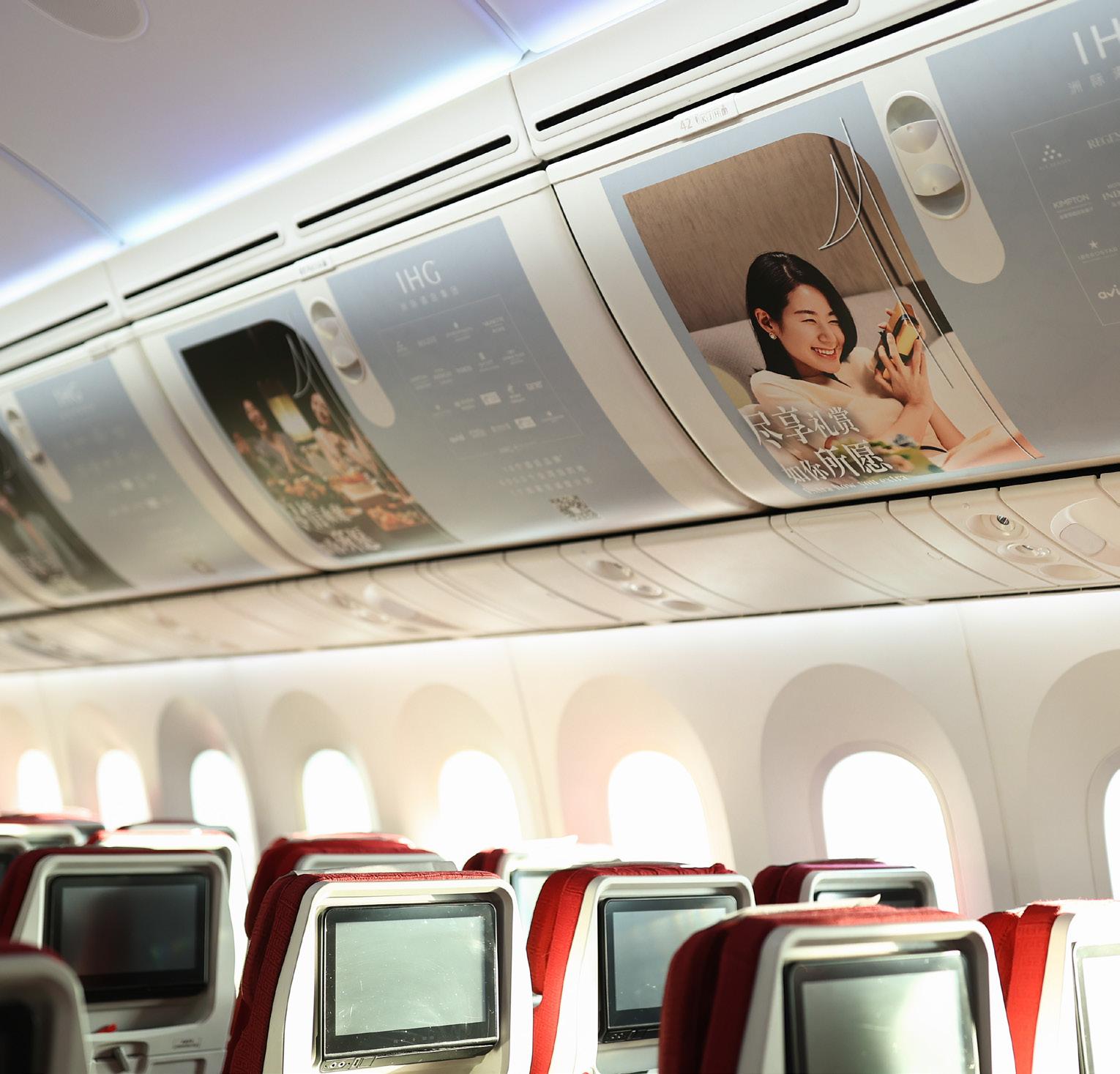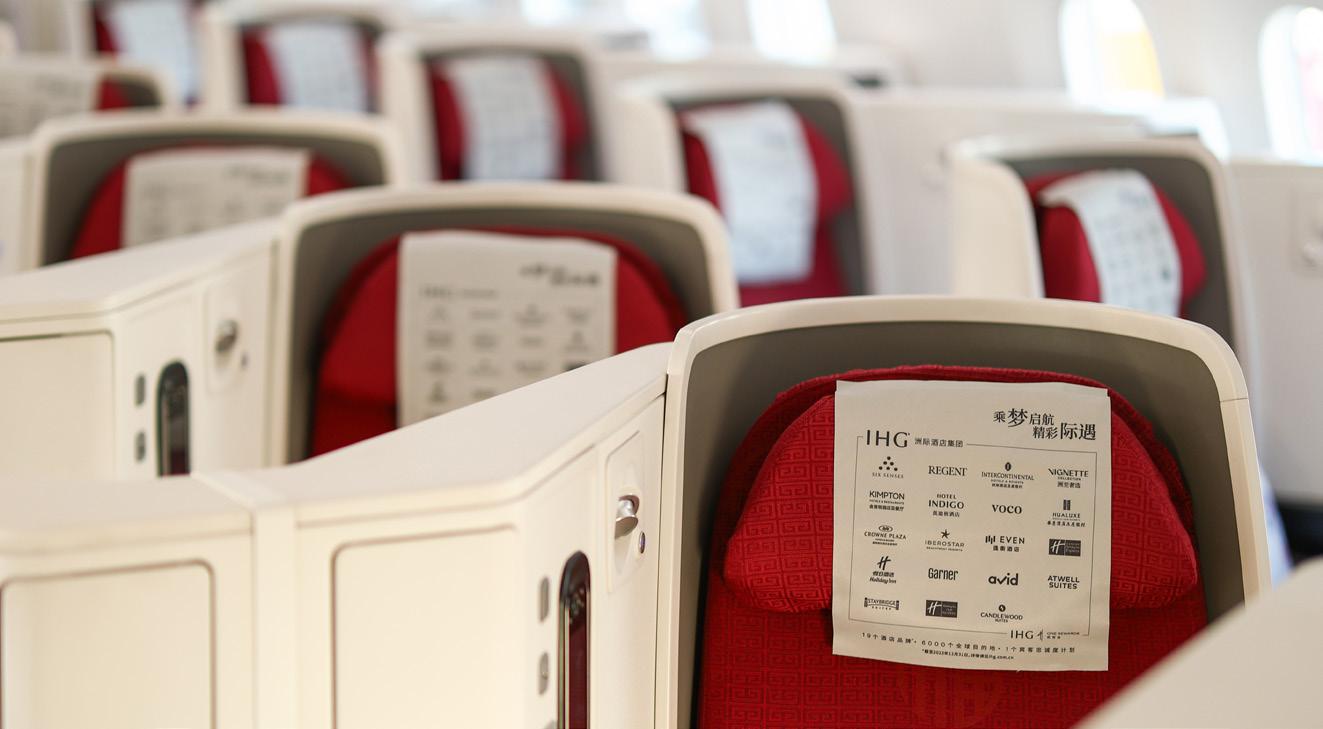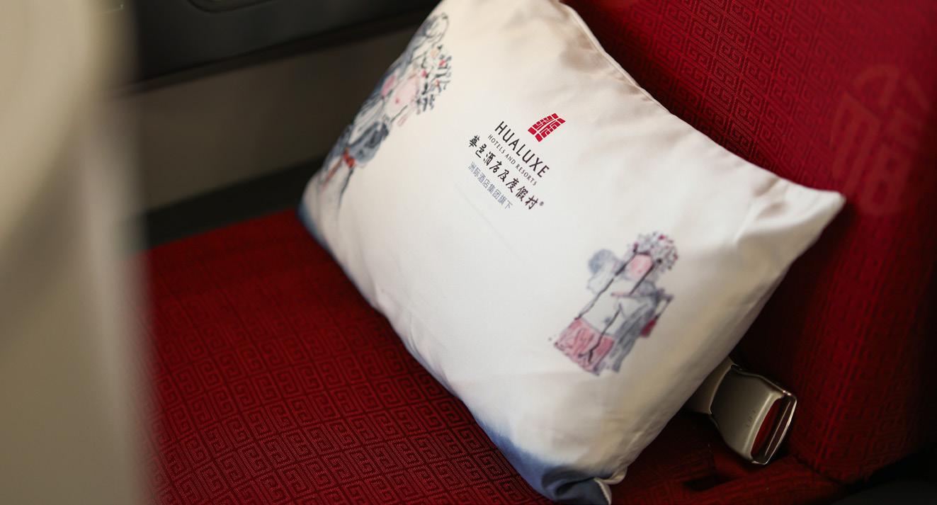 travel experiences that are full of surprises for passengers. The fuselage of the ‘IHG Explorer’ is painted with IHG’s iconic deep blue colour, marking the first time that Hainan Airlines has launched a fully themed aircraft with a hotel group. The cabin’s overhead luggage compartment is decked with custom decals visible throughout whilst the business class section is adorned with tailored lumbar pillows co-created by the HUALUXE brand and Chinese artist Chen Jiu – immersing travellers in charming Chinese aesthetics as they enjoy the comfort of 180-degree reclining seats.