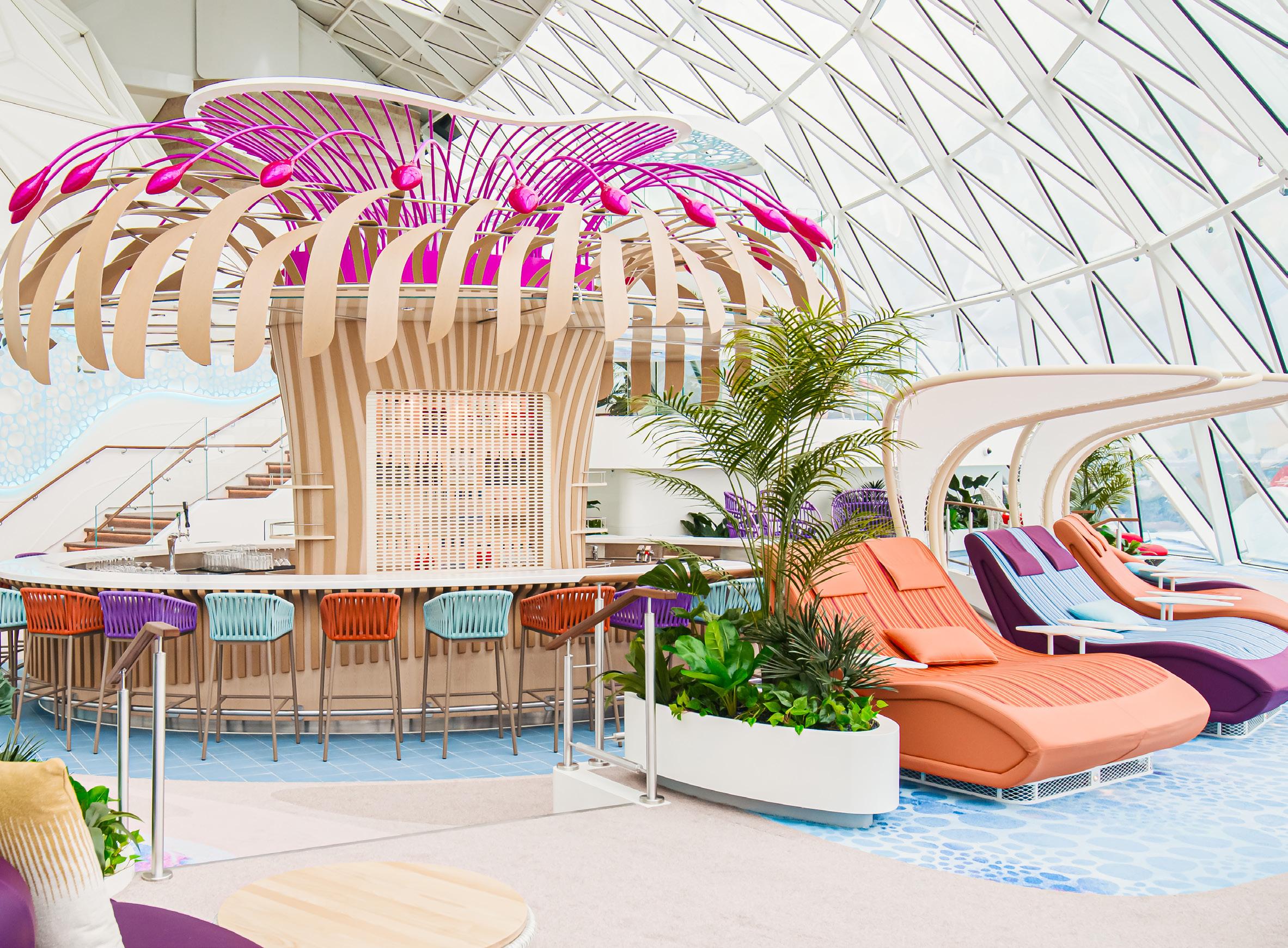 around 60 distinct work sites across the ship, overseeing the entire art installation package, a complex task that required coordination between multiple vendors, contractors, the art team, and the client. In addition, the multi-faceted project included other owner’s work scopes, highprofile areas such as the space Behind the Pearl, the Bubbles Champagne Bar, the Embarkation Portal, the Grove Entrance, and the Overlook Bar Crown in the Aquadome. As external coordinators and managers, MAKINEN collaborated with several suppliers involved in the vessel’s finishing works, to address their needs and requirements to ensure the successful completion of tasks within a very tight schedule.
