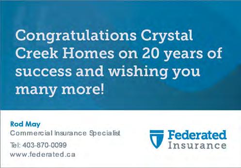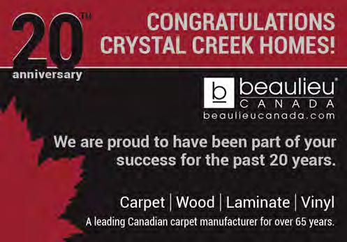 provide quality homes for the Calgary community. Congratulations, Crystal Creek Homes, on your 20th Anniversary! Here’s to many more years of success and innovation. ~ Dick’s Lumber & Building Supplies dickslumber.com 3005 Ogden Road SE, Calgary, Alberta Phone: 403-265-5651 • Fax: 403-269-2930 Email: calgary@dickslumber.com