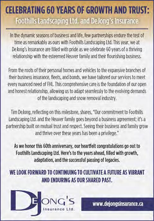 with Pride Foothills Nurseries serving the landscape industry with trees, shrubs, grasses, and perennials across the prairies. foothillsnurseries.com CONGRATULATIONS FOOTHILLS LANDSCAPING! Here’s to 60 more of building our community together. SCOTT LOWE - GENERAL LINE SALES CALGARY 6700 – 9 Street NE | Cell: 403-620-8545 2626 48 Street Southeast, Calgary, AB, T2B 1M4, (403) 273-0113 | info@foothillslandscaping.ca www.foothillslandscaping.ca Foothills Landscaping • Celebrating 60 years