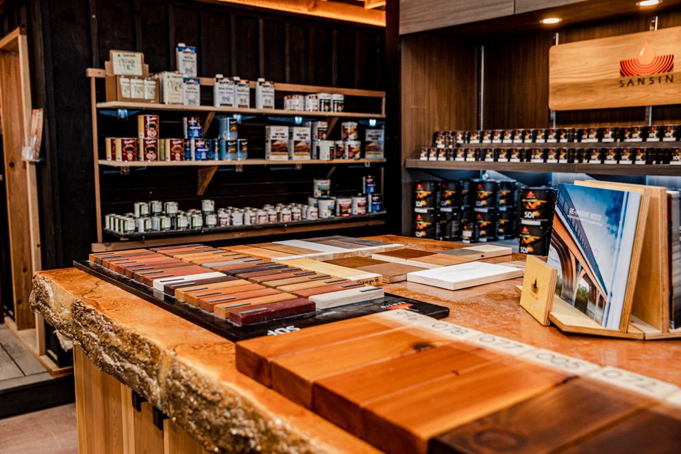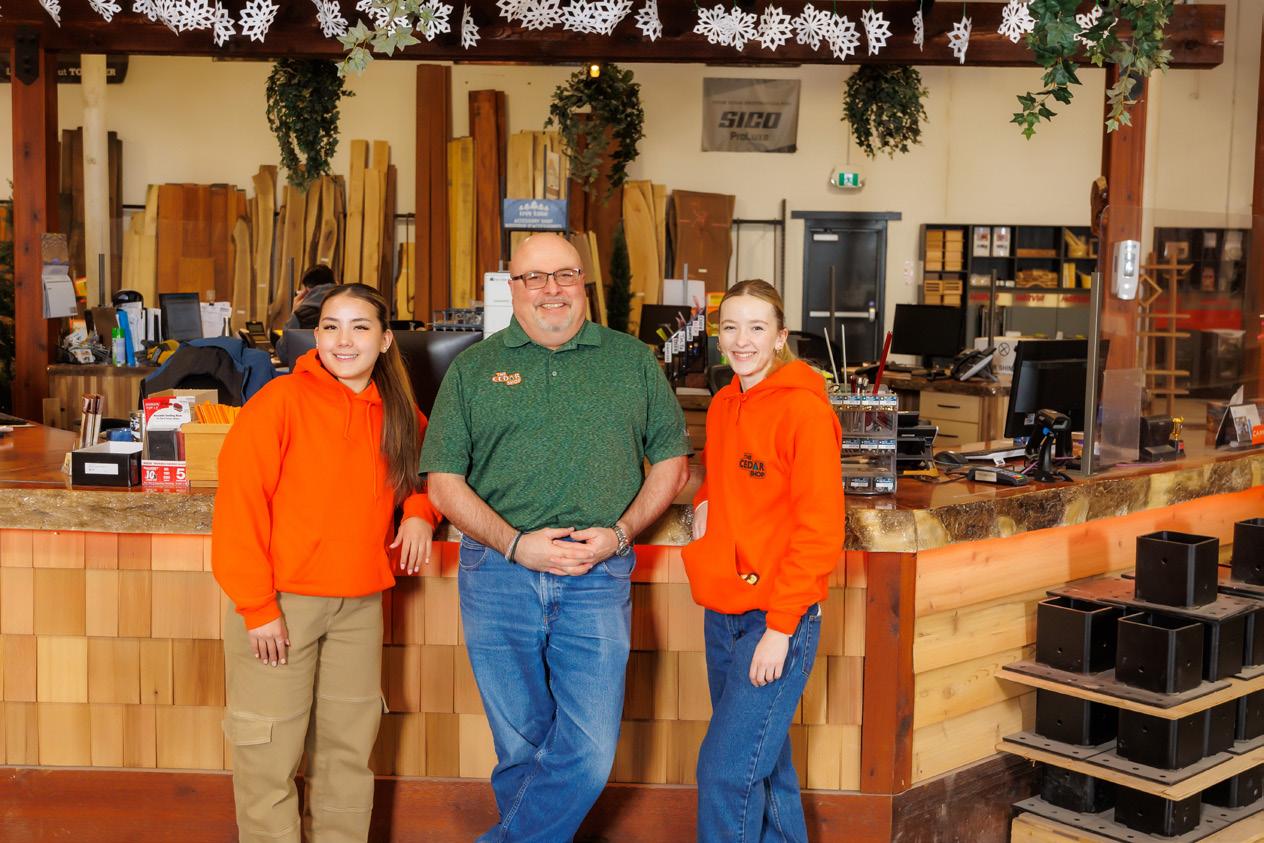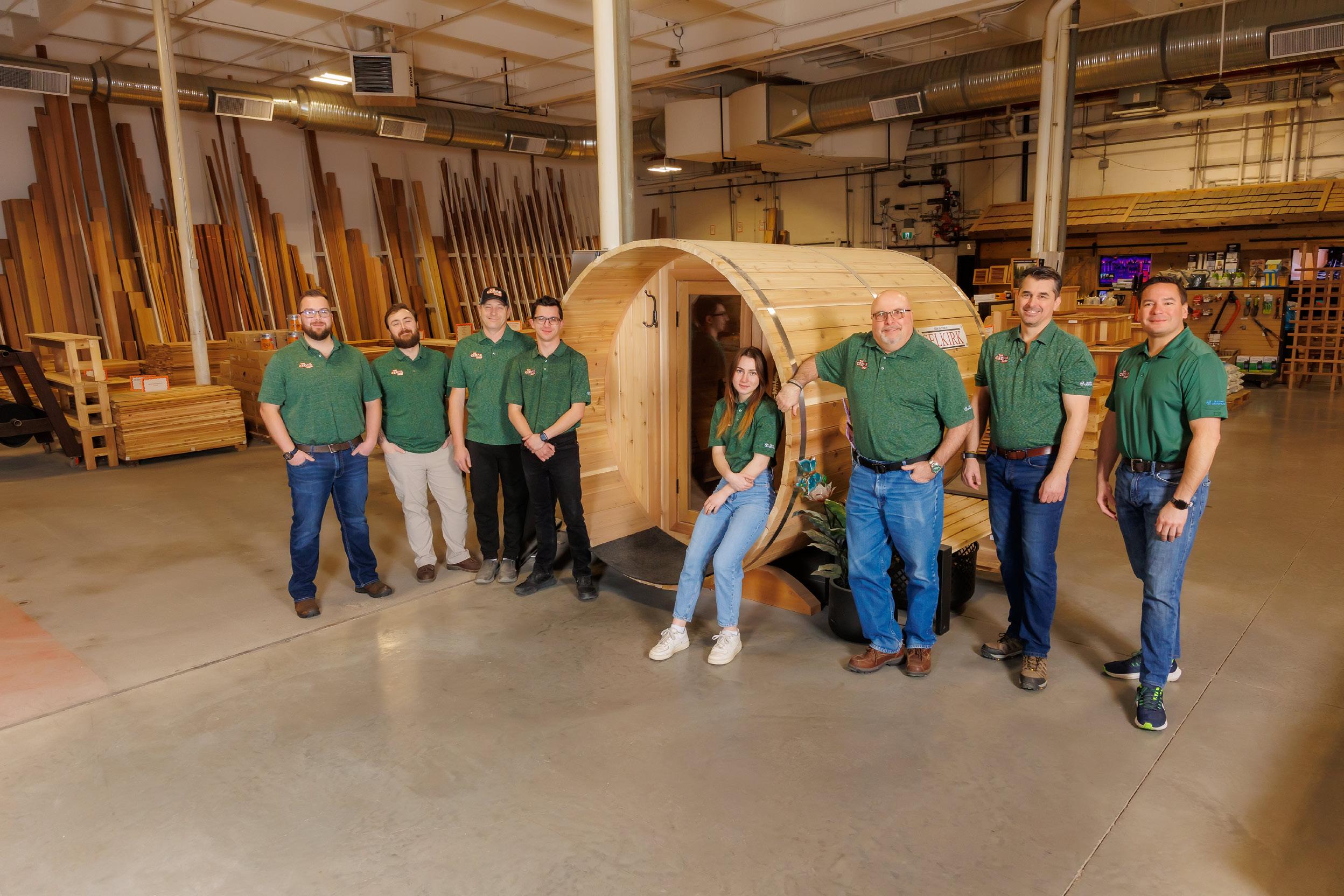 Mitch, who had extensive experience in the building business, made it happen. They had great brand recognition in the area and wanted to stay close so when a building across the street became available, they jumped at the opportunity. In 2018, only months before Bev passed and left the store to sons Tyler and Brad, The Cedar Shop moved out of the 11,000-squarefoot building and into their current 53,000-squarefoot facility. It now boasts a 15,000-square-foot showroom, ample storage, an onsite assembly mill and manufacturing space where carpenters construct beautiful custom furniture and yard accessories including cedar barrel saunas and custom lattice.