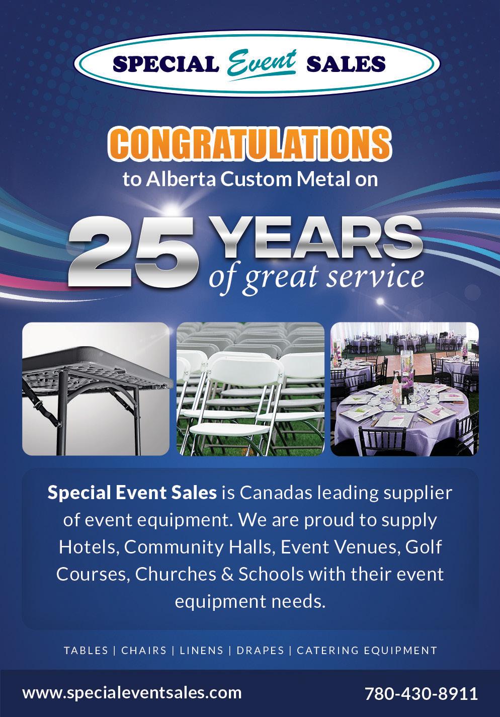 “Starting in 1994, I began fabricating snowmobile parts out of my garage for Mountain Magic. Early in 1999 I was approached by Neil Goodkey of Special Event Rentals to build custom rental products, including barbeques and chair dollies. That is when my dream became a reality and in September of 1999, Alberta Custom Metal Fabricators Ltd. was officially open for business.”