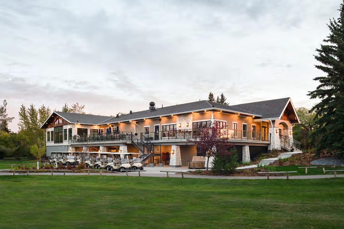 facility. Showcasing beautiful natural stone and heavy timber accents, the new facility is home to an event space able to accommodate 220 people, a full service lounge, pro shop, indoor simulators and putting green. The new clubhouse was constructed in the exact location as the original, and was designed to capitalize on the beautiful views overlooking the course.