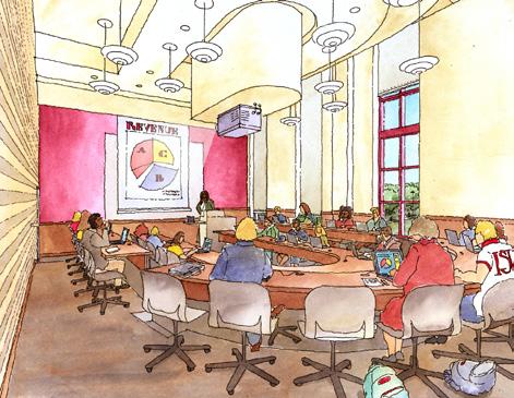 great new home it has turned out to be. The move consolidated business programs under one roof, a key improvement from the prior arrangement in which the Accounting department was left behind in Stevenson when the rest of the College moved to the space-constrained Williams Hall. State Farm Hall of Business also provided modern classrooms, along with collaborative spaces that will always be available to students.