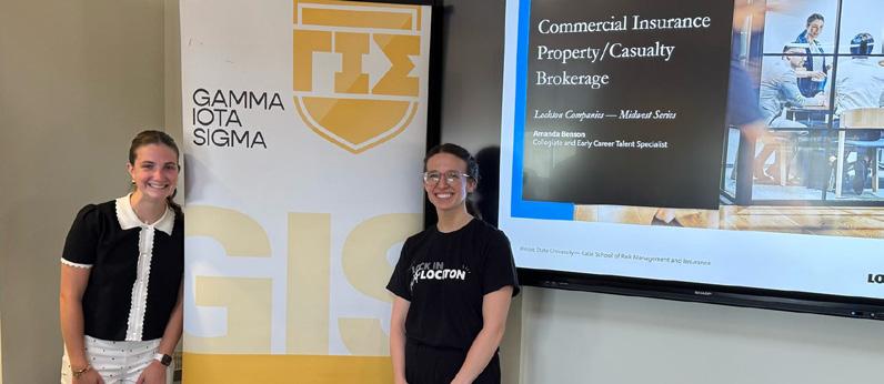 “In early August, three of our members had the exciting opportunity to attend the Grand Chapter’s Leadership Symposium in Columbus, Ohio. We had the chance to network at their career fair, gain valuable advice and insights from other GIS chapters, and attend thought-provoking sessions designed to strengthen our leadership skills. Sara and I trained for the Student Advisory Council, a Grand Chapter initiative designed to support communication and collaboration between students and professionals, while Maddie was able to host her own session about the synergy between Risk Management & Insurance and Actuarial Sciences!” ~ Carly Pye