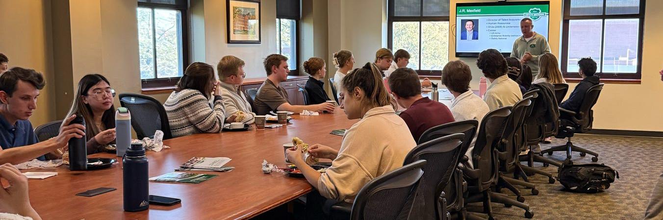 Illinois State Students in Finance (ISSF) is a student organization that connects students to finance industry professionals. Students learn what it is like to work in finance and about the wide range of roles available in the industry. ISSF engages students with guest speaker meetings, field trips, resume reviews, mock interviews, and social events. Over 400 students attended ISSF events in 2025! ISSF officers include Luke Finn (President), Caitlyn Finfrock (Vice President), Kolton Mannin (Treasurer) and Caleb Terrell (Secretary).