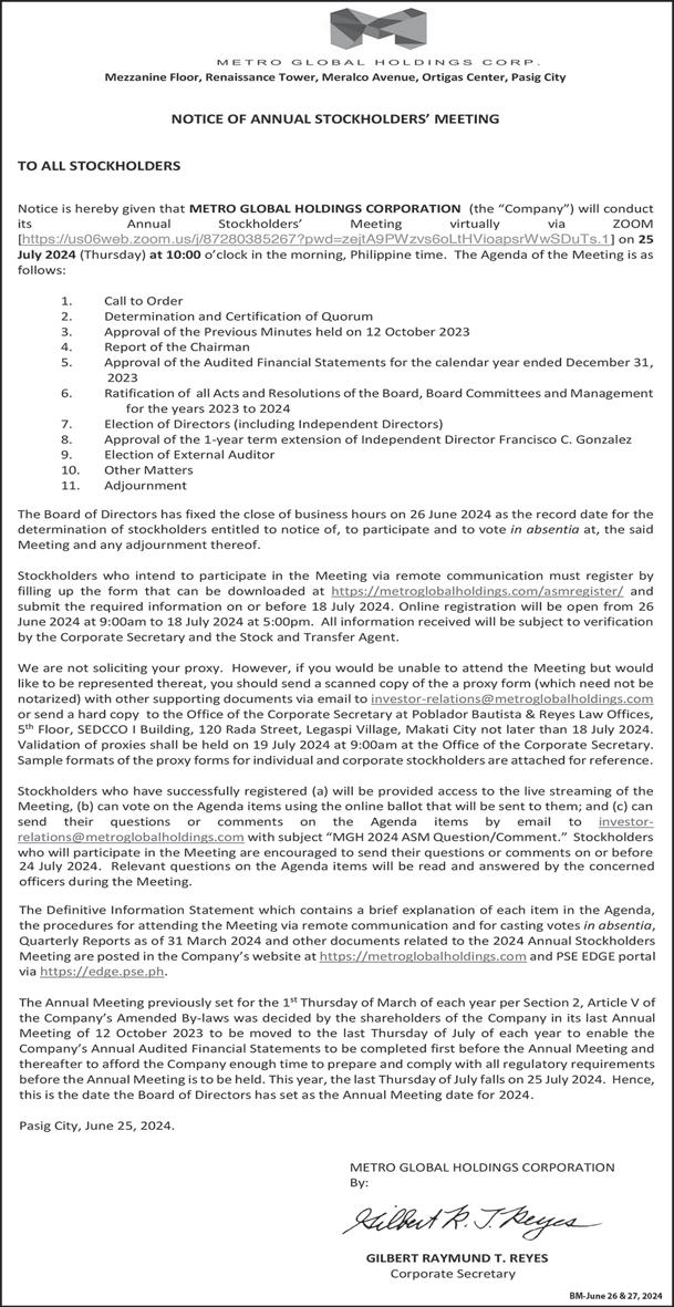 The Monetary Board, the highest policy-making body of the BSP which sets key policy rates in the country, will meet on June 27, Thursday.