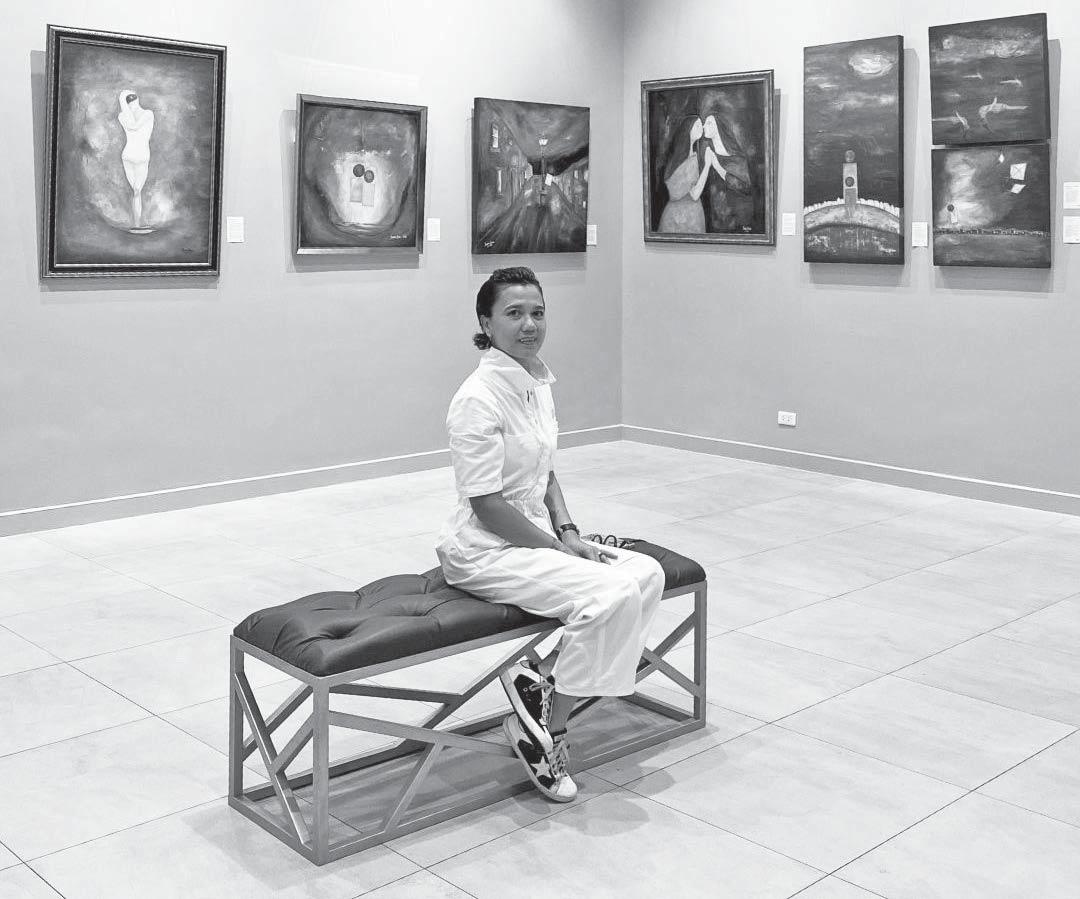 TALES of the Psyche Artist Sheila Marie Basio with her artworks at the launching of her third solo exhibition at Art Cove