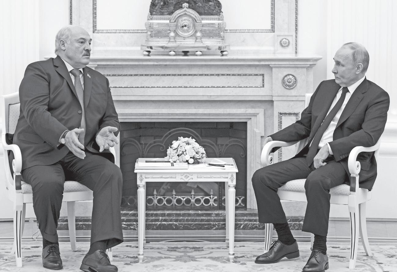RUSSIAN President Vladimir Putin, right, listens to Belarus President Alexander Lukashenko during their meeting at the Kremlin in Moscow, Russia on Thursday, April 11, 2024. GAVRIIL GRIGOROV, SPUTNIK, KREMLIN POOL PHOTO VIA AP