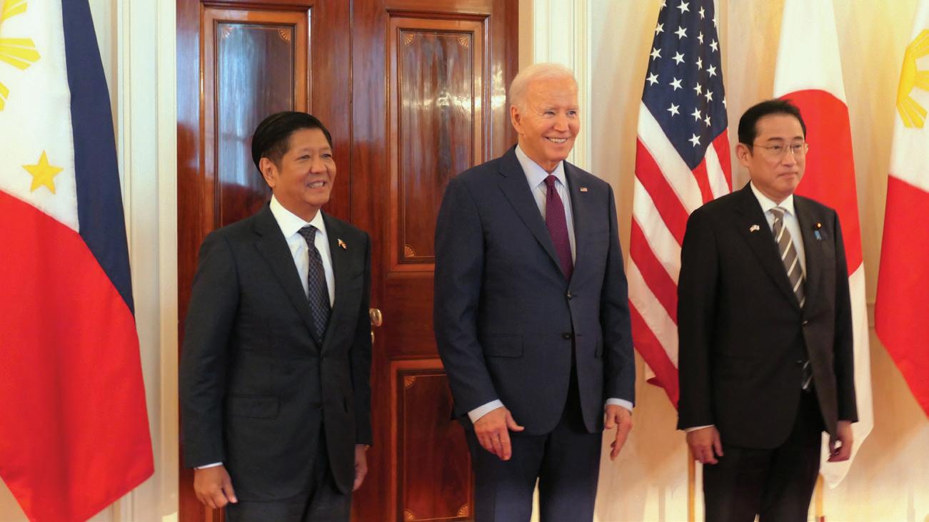 President Joe Biden hosts Philippine President Ferdinand R. Marcos Jr. and Japan Prime Minister Fumio Kishida at the White House for the historic trilateral summit of leaders, which focused on “deepening relations” that will lead to a “peaceful, stable, and prosperous Indo-Pacific.” Biden said the Philippines is set to receive fresh investments in critical sectors as it becomes the beneficiary of a new “economic corridor” under the Partnership for Global Infrastructure and Investment Initiative (PGIII) of the Group of 7 (G-7). Meanwhile, America’s defense commitment to Pacific allies was “ironclad,” said Biden. Related stories on pages A2 and A3 News, and A11 World