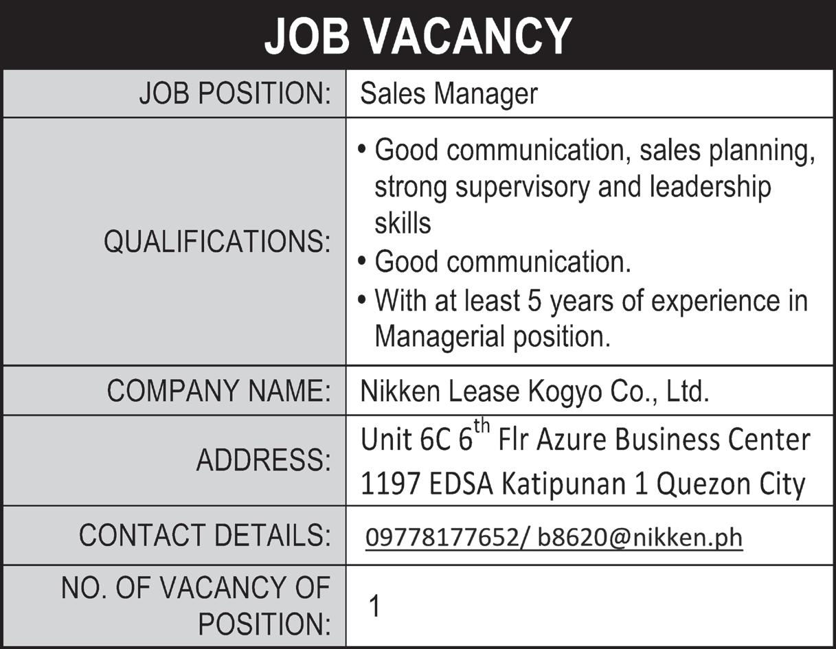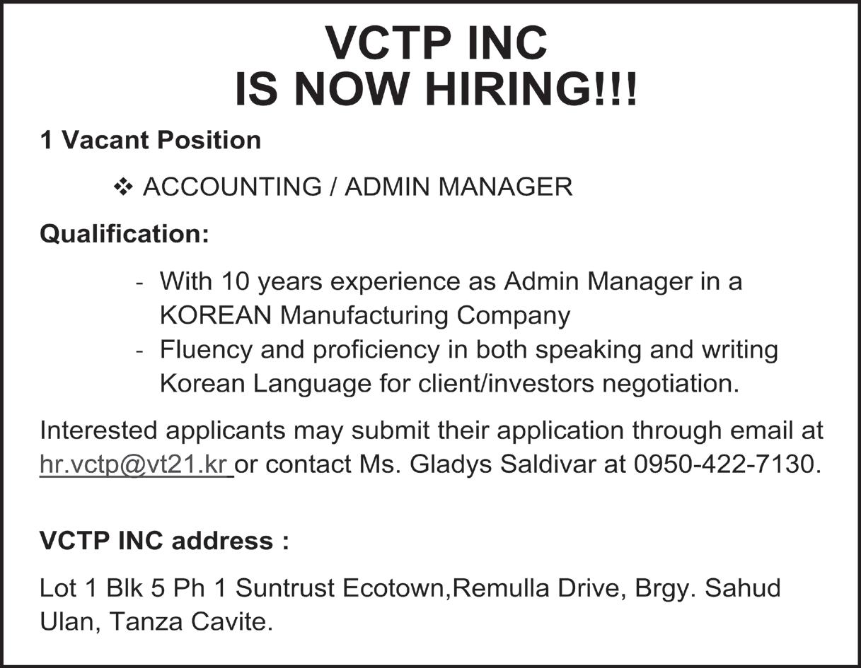 ESTABLISHMENT / ADDRESS No. NAME OF FOREIGN NATIONAL , POSITION AND BRIEF DESCRIPTION QUALIFICATION AND SALARY RANGE ESTABLISHMENT / ADDRESS No. NAME OF FOREIGN NATIONAL POSITION AND BRIEF DESCRIPTION QUALIFICATION AND SALARY RANGE ESTABLISHMENT / ADDRESS No. NAME OF FOREIGN NATIONAL , POSITION AND BRIEF DESCRIPTION QUALIFICATION AND SALARY RANGE 73. HOANG VAN HAU Vietnamese Customer Service Brief Job Description: Manage incoming calls and inquiries, handling complaints, provide solutions, process customer accounts and file documents. Basic Qualification: College graduate, preferably 1 yr. of work experience in similar field, and speak and write fluently in their native language. Salary Range: Php 30,000 - Php 59,999 74. HOANG, PHUONG THAO Vietnamese Customer Service Brief Job Description: Manage incoming calls and inquiries, handling complaints, provide solutions, process customer accounts and file documents. Basic Qualification: College graduate, preferably 1 yr. of work experience in similar field, and speak and write fluently in their native language. Salary Range: Php 30,000 - Php 59,999 75. LAM CHI VAN Vietnamese Customer Service Brief Job Description: Manage incoming calls and inquiries, handling complaints, provide solutions, process customer accounts and file documents. Basic Qualification: College graduate, preferably 1 yr. of work experience in similar field, and speak and write fluently in their native language. Salary Range: Php 30,000 - Php 59,999 76. LANG THI PHUONG Vietnamese Customer Service Brief Job Description: Customer support and data base services. Basic Qualification: Knowledgeable in computer applications with good verbal and written communication skills. Salary Range: Php 30,000 - Php 59,999 77. LE DAO THANH PHUC Vietnamese Customer Service Brief Job Description: Customer support and data base services. Basic Qualification: Knowledgeable in computer applications with good verbal and written communication skills. Salary Range: Php 30,000 - Php 59,999 78. LE HOANG NGUYEN Vietnamese Customer Service Brief Job Description: Manage incoming calls and inquiries, handling complaints, provide solutions, process customer accounts and file documents. Basic Qualification: College graduate, preferably 1 yr. of work experience in similar field, and speak and write fluently in their native language. Salary Range: Php 30,000 - Php 59,999 79. LE VAN DAT Vietnamese Customer Service Brief Job Description: Manage incoming calls and inquiries, handling complaints, provide solutions, process customer accounts and file documents. Basic Qualification: College graduate, preferably 1 yr. of work experience in similar field, and speak and write fluently in their native language. Salary Range: Php 30,000 - Php 59,999 80. LE VAN NGOC Vietnamese Customer Service Brief Job Description: Customer support and database services. Basic Qualification: Knowledgeable in computer applications with good verbal and written communication skills. Salary Range: Php 30,000 - Php 59,999 81. LE VAN THANG Vietnamese Customer Service Brief Job Description: Customer support and database services. Basic Qualification: Knowledgeable in computer applications with good verbal and written communication skills. Salary Range: Php 30,000 - Php 59,999 82. LE XUAN HIEN Vietnamese Customer Service Brief Job Description: Customer support and database services. Basic Qualification: Knowledgeable in computer applications with good verbal and written communication skills. Salary Range: Php 30,000 - Php 59,999 83. LE, DUC HAI Vietnamese Customer Service Brief Job Description: Manage incoming calls and inquiries, handling complaints, provide solutions, process customer accounts and file documents. Basic Qualification: College graduate, preferably 1 yr. of work experience in similar field, and speak and write fluently in their native language. Salary Range: Php 30,000 - Php 59,999 84. LIU, SY BAO Vietnamese Customer Service Brief Job Description: Customer support and database services. Basic Qualification: Knowledgeable in computer applications with good verbal and written communication skills. Salary Range: Php 30,000 - Php 59,999 85. LUU DINH DUC Vietnamese Customer Service Brief Job Description: Manage incoming calls and inquiries, handling complaints, provide solutions, process customer accounts and file documents. Basic Qualification: College graduate, preferably 1 yr. of work experience in similar field, and speak and write fluently in their native language. Salary Range: Php 30,000 - Php 59,999 86. LY CONG VAY Vietnamese Customer Service Brief Job Description: Manage incoming calls and inquiries, handling complaints, provide solutions, process customer accounts and file documents. Basic Qualification: College graduate, preferably 1 yr. of work experience in similar field, and speak and write fluently in their native language. Salary Range: Php 30,000 - Php 59,999 87. MONG THI LAN Vietnamese Customer Service Brief Job Description: Manage incoming calls and inquiries, handling complaints, provide solutions, process customer accounts and file documents. Basic Qualification: College graduate, preferably 1 yr. of work experience in similar field, and speak and write fluently in their native language. Salary Range: Php 30,000 - Php 59,999 88. NGO THI NGAN Vietnamese Customer Service Brief Job Description: Customer support and data base services. Basic Qualification: Knowledgeable in computer applications with good verbal and written communication skills. Salary Range: Php 30,000 - Php 59,999 89. NGUYEN NGOC NAM Vietnamese Customer Service Brief Job Description: Customer support and data base services. Basic Qualification: Knowledgeable in computer applications with good verbal and written communication skills. Salary Range: Php 30,000 - Php 59,999 90. NGUYEN NHAT PHI Vietnamese Customer Service Brief Job Description: Manage incoming calls and inquiries, handling complaints, provide solutions, process customer accounts and file d