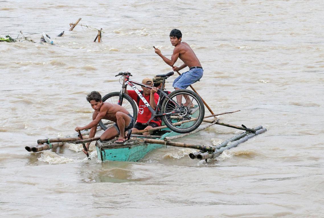 RESIDENTS of San Mateo, Rizal, cross the powerful currents of the swollen San Mateo River, caused by the relentless rains of Severe Tropical Storm Kristine. NONOY LACZA