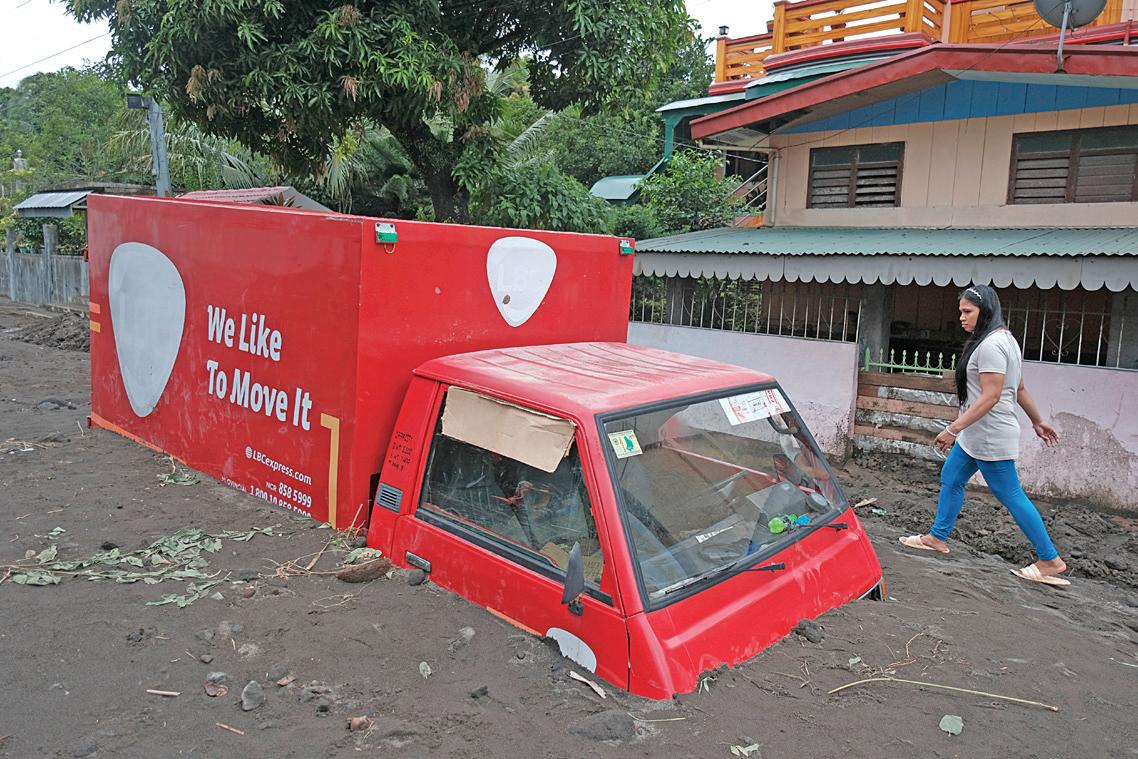 A RESIDENT walks beside a truck buried by volcanic mud that flowed from Mayon Volcano after heavy rains caused by Tropical Storm Kristine hit Guinobatan, Albay, on Wednesday, October 23, 2024. AP/JOHN MICHAEL MAGDASOC