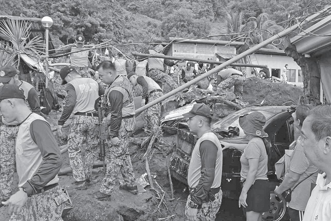 IN this photo provided by the Police Regional Office Calabarzon, police conduct search and rescue operations after a landslide hit a village burying some people in Talisay, Batangas, on Friday, October 25, 2024. POLICE REGIONAL OFFICE CALABARZON VIA AP