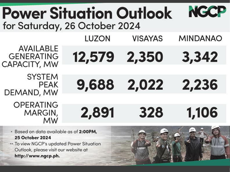 Although Kristine has left PAR, Pagasa warned of moderate to heavy rainfall (50-100mm) Saturday in Palawan, western Visayas, Negros Occidental, southern portion of Negros Oriental and Zamboanga Peninsula.