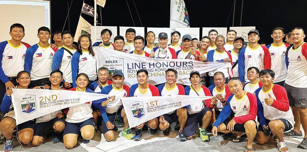 JUDES AND HIS VICTORIOUS CREW Members of the Standard Insurance Centennial 5 team skippered by Standard Insurance Group Chairman Ernesto “Judes” Echauz (11th from left, standing) dominates the Rolex China Sea Race which started from Victoria Harbour in Hong Kong on Holy Wednesday and finished at Subic Bay on Black Saturday. Standard Insurance Centennial 5 is the first Philippine boat to win line honors in the prestigious 61-year-old race.