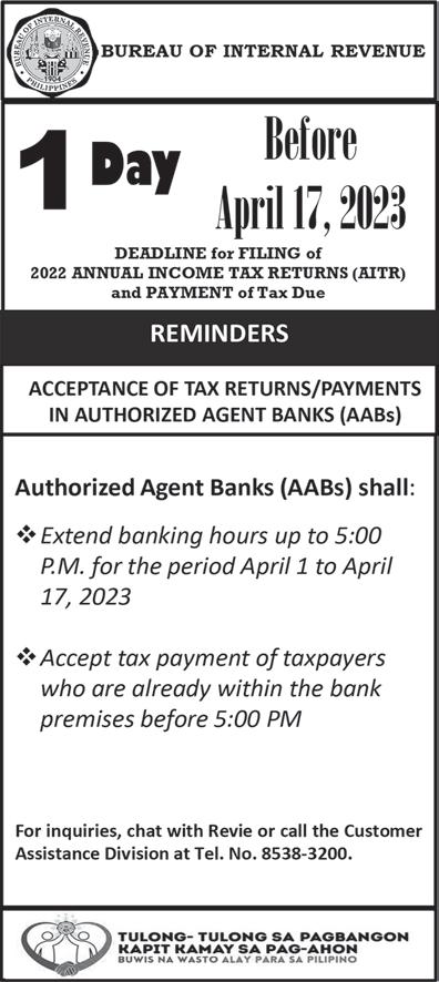Circulation: 893-1662; 814-0134 to 36. www.businessmirror.com.ph