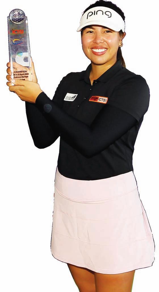 AULINE DEL ROSARIO survived a scare from Kim Seoyun and closed out with a two-putt par 71 then watched the Korean miss a roll for birdie to pull off a one-stroke victory in the International Container Terminal Services Inc. (ICTSI) Caliraya Springs Championship in Cavinti, Laguna, on Thursday.“I think what I would take away from this week is my short game since Caliraya Springs is not really a long course, so my approach shots and putting were very much used,” said del Rosario, due for a big finish in the Ladies Professional Golf Association (LPGA) Tour’s farm league. What I noticed about my game is that I made a lot of shots below 100 yards, so I would focus on practicing those yardages just to fine-tune it a little bit more,” added the ICTSI-backed 2017 Ladies Philippine Golf Tour Order (LPGT) of Merit winner, who missed the Anvaya Ladies International ruled by fellow Epson Tour campaigner Bianca Pagdanganan last February. It’s so nice to see familiar faces and back in local competition. There’s a lot of talents here and I’m glad to be a part of it,” said del Rosario, who also topped the LPGT Riviera leg in 2020 before embarking on the US tour.