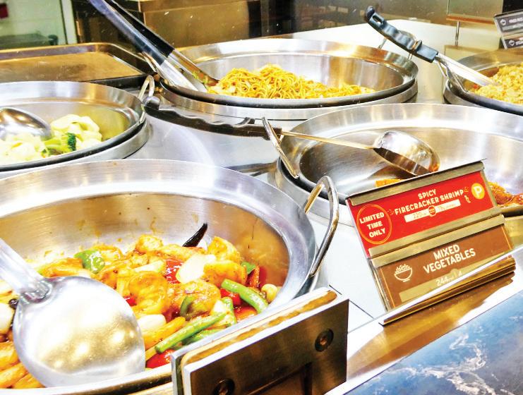 A portion of Panda Express’ selection of mains and entrees Mongolian Pork Orange Chicken