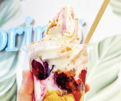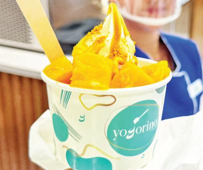 Mango with Speculoos Crumbles & Magic Shell Strawberry Parfait Gelato flavors at Yogorino