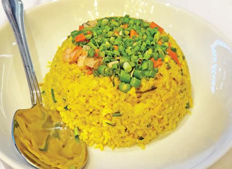 And let's talk about the Roasted Crispy Pork, offering the perfect blend of crunch and seasoning, alongside their tender Sauteed Beef Scallion. Their Yang Chow Fried Rice comes in a generous serving packed with egg, asado pork, shrimp and green beans. This dish is like the yang to their entrees' yin, complementing them perfectly with its unique flavor.