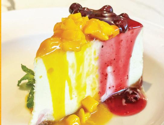 And for dessert, indulge in a decadent slice of Blueberry Cheesecake. Wash it all down with a refreshing drink from their bar—try the Rosa Sangria or Bianca Sangria to cool off in the summer heat.