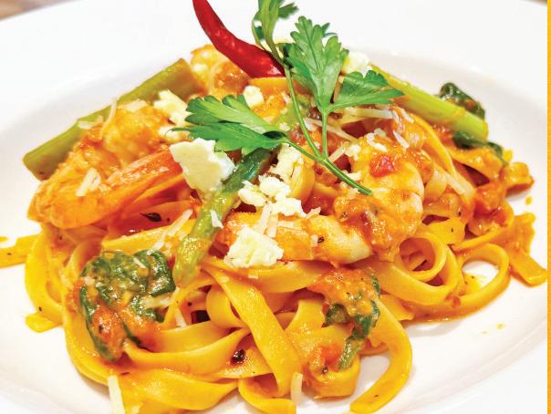 For pasta lovers, the Shrimp Fra Diablo is a must-try, featuring fettuccine with tomato cream, shrimps, garlic, spinach, and asparagus—a seafood lover's dream with a hint of spice. Don't miss out on the Quattro Staggioni pizza, loaded with pepperoni, mushroom, artichokes, shrimps, black olives, and a variety of cheeses.