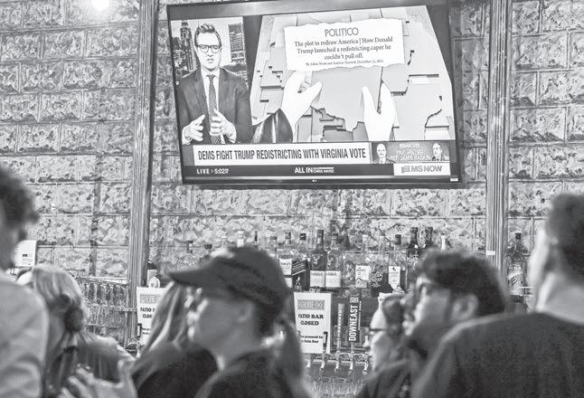 VOTERS attend a Virginia redistricting vote watch party during a special election in Arlington, Virginia, on April 21. BLOOMBERG