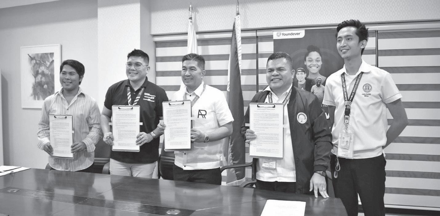 H eading the delegation are Rain or Shine Alternate Governor Edison Oribina, Redmond Yu and Jireh Ibanez.
