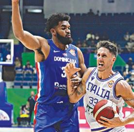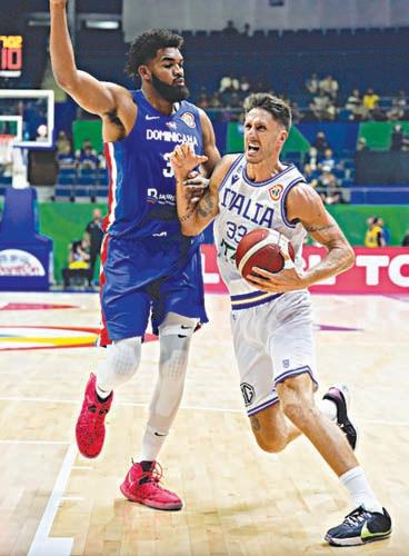 THE Dominican Republic’s Karl-Anthony Towns defends Italy’s Achille Polonara during their match at the Smart Araneta Coliseum Sunday. The Dominicanos won, 87-82. AP