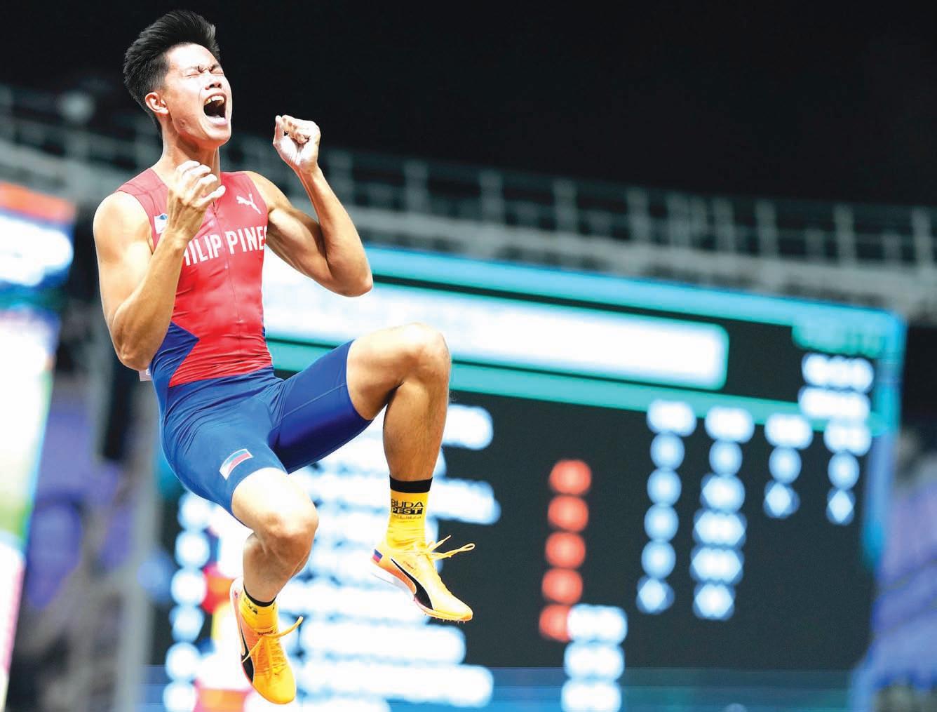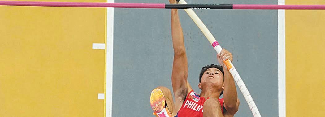 SILVER FOR OBIENA IN WORLDS Ernest John “EJ” Obiena clears 6.0 meters for the second time this season to bag silver—an improvement from his bronze last year—in the men’s pole vault action at the World Athletics Championships in Budapest on Sunday. Olympic champion Armand Duplantis of Sweden retained his title with 6.10m. AP