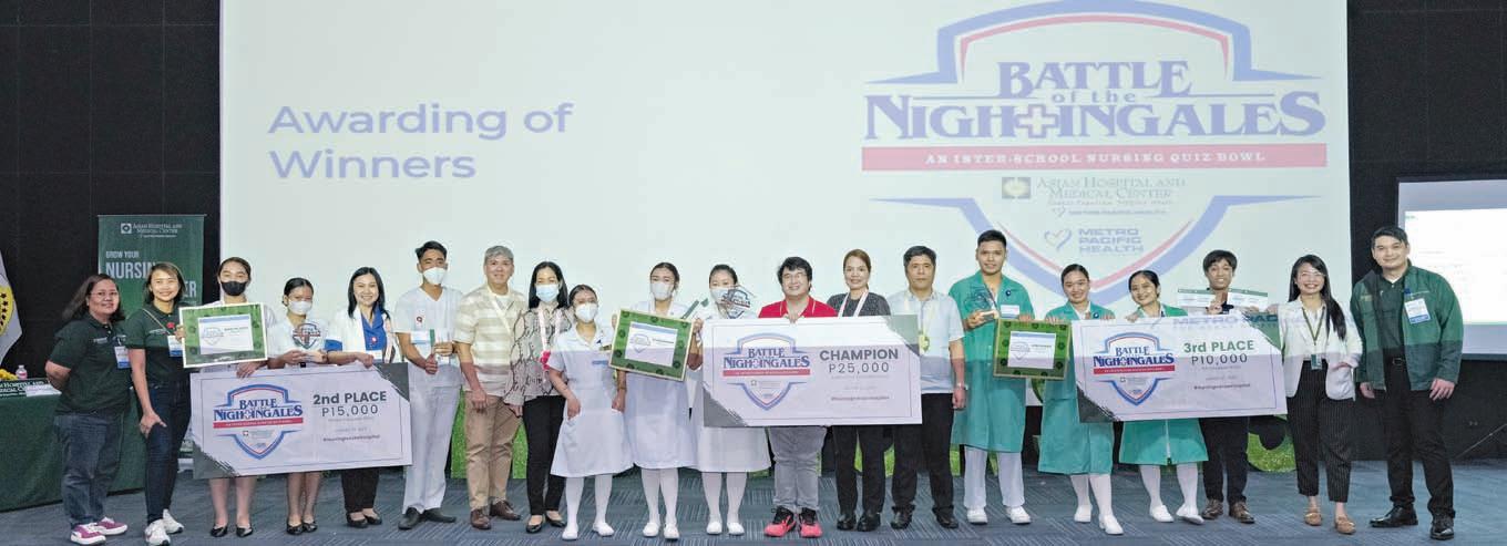 Asi A n Hospital and Medical Center (AHMC), in collaboration with Metro Pacific Health (MPH), City Government of Muntinlupa and the Philippine nurses Association nCR Zone 6, hosted the “Battle of the nightingales (BOTn) internursing school Quiz Bowl” on August 23, 2023.