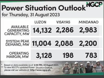 P. | | 7 DAYS A WEEK PESO EXCHANGE RATES US 56.6580 ■ JAPAN 0.3883 ■ UK 71.6610 ■ HK 7.2209 ■ SINGAPORE 41.9907 ■ AUSTRALIA 36.7031 ■ SAUDI ARABIA 15.1043 ■ EU 61.6496 ■ KOREA 0.0430 ■ CHINA 7.7831 Source BSP (August 30, 2023) C A BusinessMirror A broader look at today’s business ■ Thursday, August 31, 2023 Vol. 18 No. 318 ROTARY CLUB OF MANILA JOURNALISM AWARDS 2006 National Newspaper of the Year 2011 National Newspaper of the Year 2013 Business Newspaper of the Year 2017 Business Newspaper of the Year 2019 Business Newspaper of the Year 2021 Pro Patria Award PHILIPPINE STATISTICS AUTHORITY 2018 Data Champion EJAP JOURNALISM AWARDS BUSINESS NEWS SOURCE OF THE YEAR (2017, 2018, 2019, 2020) DEPARTMENT OF SCIENCE AND TECHNOLOGY 2018 BANTOG MEDIA AWARDS PESO AT RISK IN Q3 ON TRADE GAP, RATE JITTERS ABOVE, a Philippine supply boat, center, maneuvers around Chinese coast guard ships as they tried to block its way near Second Thomas Shoal, locally known as Ayungin Shoal, at the disputed South China Sea on August 22, 2023. (Top) China’s new 10-dash-line map AP/AARON FAVILA, MAP COURTESY OF GLOBAL TIMES C A