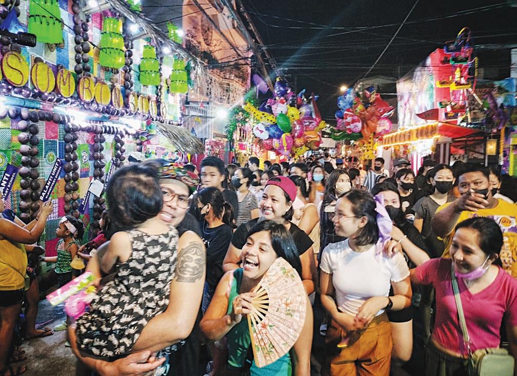 PIYESta PErYa a carnival-themed fiesta greets visitors to the Sumbingt k Festival at the intersecting barangays of Santo n ño and Santa rosa in cainta, rizal.