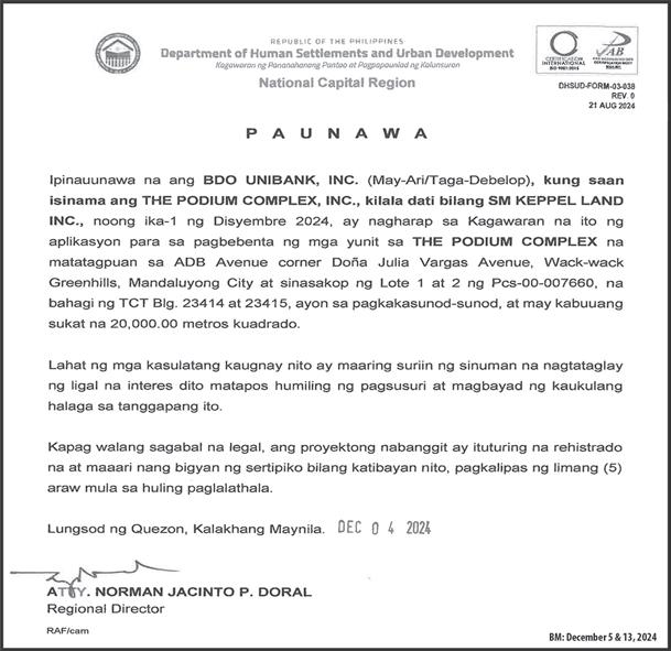 to November 2024 period, a 43.06 percent increase from the P140.88 billion approved in November 2023. In November 2024 alone, PEZA approved P77.79 billion of investments with 41 new and expansion projects. Of these, 22 are in manufacturing; 10 in the IT-BPM sector; 2 domestic, 2 in ecozone development; 1 in utilities; 3 in facilities development and 1 in logistics.