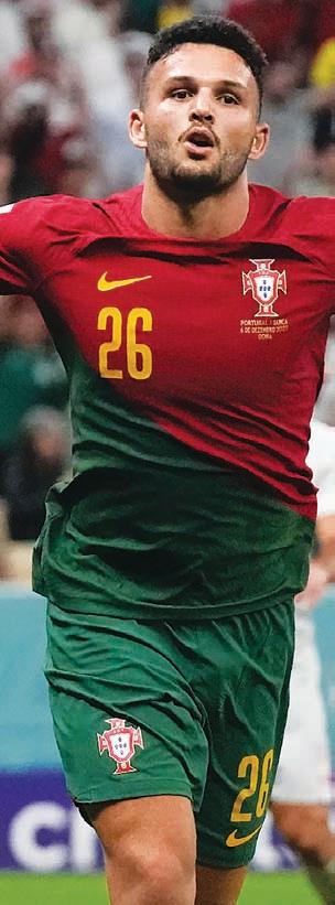 GONCALO RAMOS, a 21-year-old forward who only made his Portugal debut last month, demonstrates the kind of clinical finishing for which Cristiano Ronaldo was once known in scoring the first goal in the 17th minute and adding others in the 51st and 67th. AP