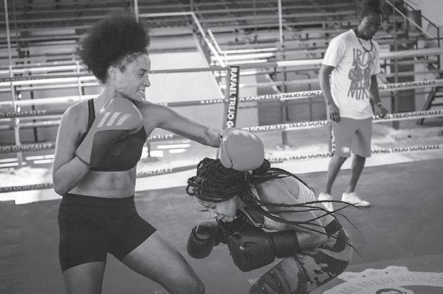 BOXER Giselle Bello Garcia (left) throws a punch at Ydamelys Moreno during a training session in Havana, Cuba. AP