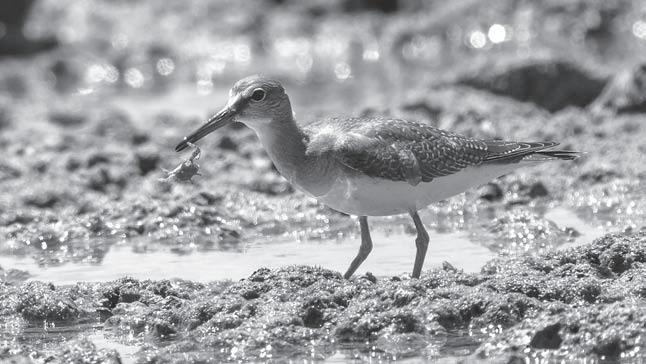 A GREY-TAILED tattler was captured with a small crab caught between its beak near the shore of the Aboitiz Cleanergy Park. DAVAO LIGHT PHOTO BY BRENDA MILAN